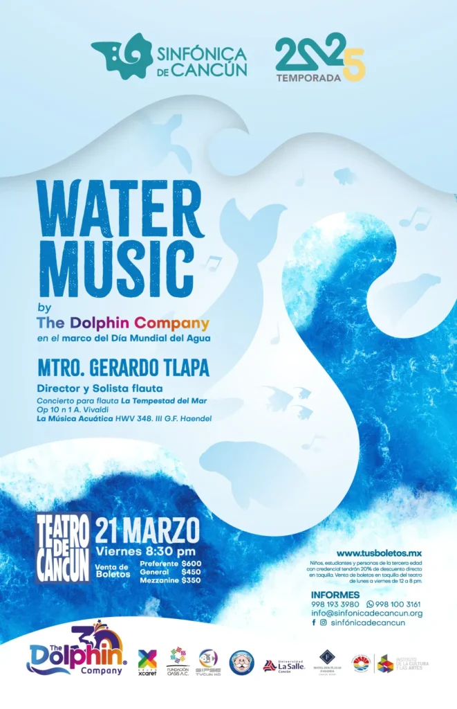 Celebra el 30° aniversario de The Dolphin Company con el concierto «Water Music», interpretado por la Orquesta Sinfónica de Cancún. Descubre todos los detalles.